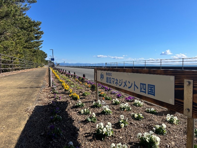 高知営業所は、高知市長浜の県道14号通称「桂浜花海道」の全長約2.7㎞にわたる花壇の