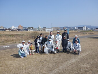 松山営業所の社員と家族合わせて16名が参加し、松山中央公園付近の石手川河川敷で清掃活動を実施しました。
