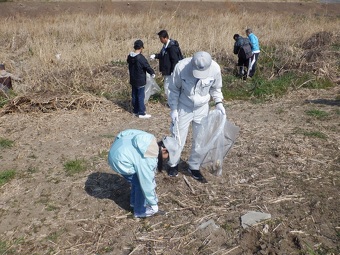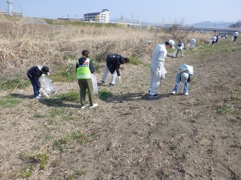 今回は晴天の下、花粉症対策のマスクを着用し、参加者約750人が1時間程度の清掃活動に励みました。